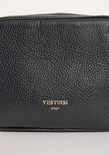 The Nicola Crossbody Camera Bag from VESTIRSI features a classic silhouette that will complement any outfit, perfect to dress up or down complete with the VESTIRSI gold embossing. Handcrafted in Italy from luxury Italian pebbled leather and gunmetal hardware. This bag comes with two straps so you can change up your look day to night, plus a functional back pocket ideal for storing your phone.