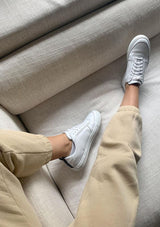 The Munich Sneaker from Von Röutte is crafted from leather with suede details and features a pull tab heel with white rubber soles for a smart casual look.
