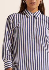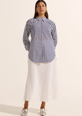 A classic button down designed for the contemporary woman. Features a concealed placket offers a clean minimalistic aesthetic and a curved hi- low hem is a flattering feature. The agile top is the building block to your summer wardrobe.