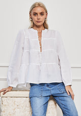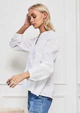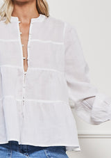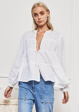 Softly gathered tiers, covered buttons and a blouson sleeve create a charming yet highly wearable piece in the banter top by Zoe Kratzmann. Cut from a quality soft ramie the banter has movement and grace. Features gathered, tiered style bodice, covered buttons through the bodice and full-length blouson sleeve.