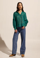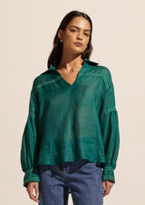 The Bounty Top from Zoe Kratzmann is an eloquent, feminine style featuring a collared V-neckline, drop shoulders and full-length blouson sleeve with cuffs.