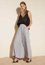 The Court Pant from Zoe Kratzmann features a flat front and softly elasticated rear waist, pockets and a wide leg design. Crafted from 100% Ramie, a non-stretch fabrication.