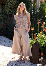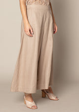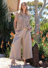 The Court Pant from Zoe Kratzmann is a fluid and flattering style. It features a flat front and softly elasticated rear waist, angled pockets and a wide leg design. Crafted from 100% linen; clean lines and maximum movement define this pant.