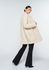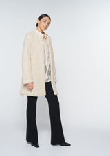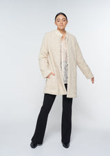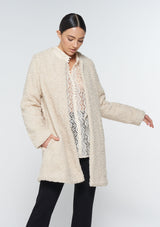 The Decant Jacket from Zoe Kratzmann features a clean and classic style with a round neckline, side pockets, full-length sleeves and thigh length hemline. This bouclé jacket is fully lined and a perfect addition to your winter wardrobe.
