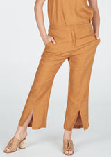 The Deft Pant from Zoe Kratzmann features a ¾ relaxed wide leg silhouette with front split, zip-hook and eye closure, and angled pockets. This Pant has been crafted from 100% Linen, a non-stretch fabrication.