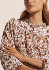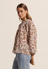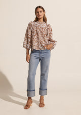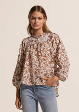 The Delight Top from Zoe Kratzmann features a smocked neckline with ruffle detail, delicate covered front centre buttons and a slight blouson sleeve. Elevated detail such as a lace trim create a feminine style. It blends a chic polished look with a free-spirited feel making it the ideal choice for everyday wear.