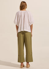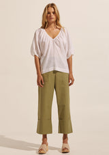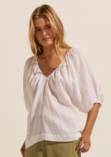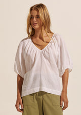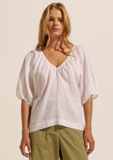 The Element Top from Zoe Kratzmann features a deep gathered V neckline and short raglan sleeves that create elegant drama in this simple yet stylish piece. Crafted in a natural ramie fabric, this lightweight top is the perfect spring go-to style.