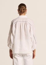 The Equip Top from Zoe Kratzmann blends luxe details to create a timeless forever piece. It features a high neckline with delicate button opening, blouson ¾ sleeves and a relaxed fit which is effortless and flattering. Elevated detail such as pintucks, embroidery and lace trim create a feminine style. It blends a chic polished look with a free-spirited feel making it the ideal choice for everyday wear.