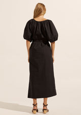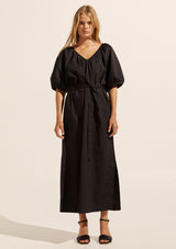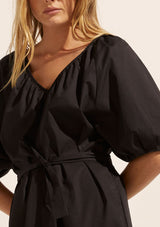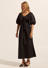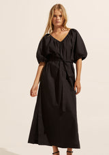 The Flow Dress from Zoe Kratzmann takes drama and elegance and infuses it into a modern midi dress. The focal point of this piece is the gathered v-neckline which creates a ruching effect that is balanced by the straight, yet off the body silhouette.  Side splits, side pockets and short blouson sleeves add appeal. The self-tie belt provides varied styling options. This dress is crafted from 100% Cotton and is the perfect solution for effortless yet elevated spring dressing.