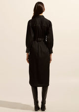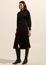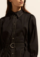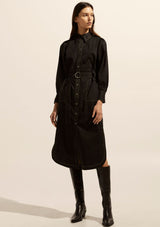 The Gist Dress from Zoe Kratzmann boasts a timeless design complemented by contrast stitch detailing. It features a classic shirt collar, centre button through fastening, patch pockets, gathered sleeves with cuffs and a curved hemline. The adjustable D-ring belt allows this piece to be styled to suit all body shapes. Crafted from 100% cotton, this tailored shirt dress seamlessly merges clean lines with utilitarian charm.