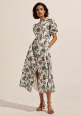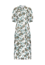 The Impulse Dress from Zoe Kratzmann features a high round neckline, button through opening, side pockets, blouson short sleeves with elasticated cuffs and a neatly structured bodice that relaxes into a flowing A-line skirt. This whimsical dress is crafted from 100% linen and brought to life with a signature print of beautiful botanicals that are both romantic yet modern.