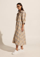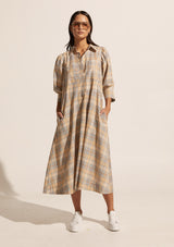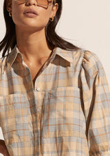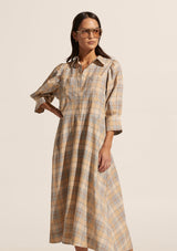 The Keynote Dress from Zoe Kratzmann is clean and modern. It features a stand collar with a button-down opening to the waist, double patch pocket detail and a ¾ length cuffed blouson sleeve. This mid length dress is perfect for the new season and your go to for spring dressing.