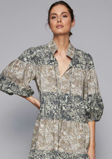 The Magnum Dress in Meadow Print from Zoe Kratzmann captures the joy and optimism of Spring. It features a ¾ length blouson sleeve, a high open neckline with tie detail and gathered tiers with light and dark colour tones throughout creating volume and drama throughout the mid length dress. Crafted from 100 % cotton; this dress blends a chic polished look with a free-spirited feel making it the ideal choice for everyday wear.