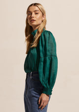 The Pace Top from Zoe Kratzmann is an eloquent, feminine style featuring a high neckline and full-length blouson sleeve with cuffs.