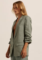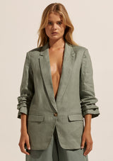 The Prevail Jacket from Zoe Kratzmann features a classic lapel with centre button opening, ¾ length ruched sleeves and flap pocket detail. This lightly structured jacket is crafted from 100% Linen and is the perfect solution for effortless yet elevated spring dressing.