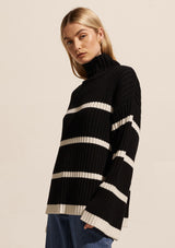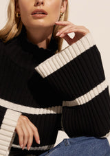 The Privy Knit from Zoe Kratzmann features a ribbed knit detail with a high neckline, dropped shoulder and full-length loose sleeves.