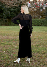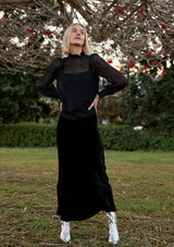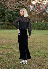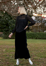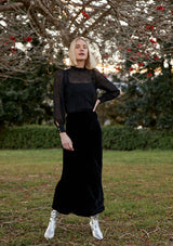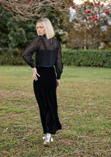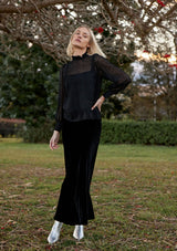 The Quip Top by Zoe Kratzmann is crafted from a velvet burnout fabric featuring a high neck stand with ruffle detailing which adds a refined, romantic touch