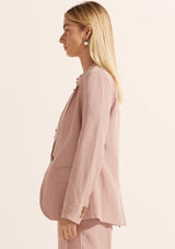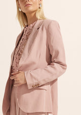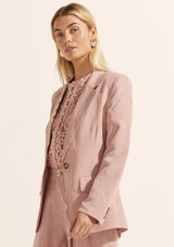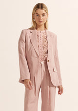 The Relay Jacket from Zoe Kratzmann features a timeless design with its classic lapel, centre button closure and full-length sleeves. Detailed with flap pockets and a back vent, this lightly structured jacket is crafted from a tencel-linen blend, its soft drape renders it ideal for everyday effortless wear.