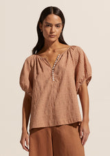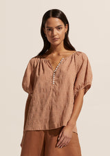 The Soar Top from Zoe Kratzmann has subtle details which define this elegant forever style. It features a softly gathered neckline with delicate button opening, a front centre seam detail and a ¾ length blouson sleeve.