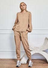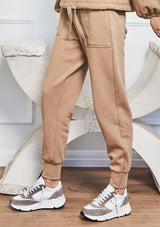 The stake pant by Zoe Kratzmann is a classic track style elevated by a wide flat elastic waist and a neat fitting silhouette crafted in a quality fleece fabric. Squared off patch pockets and a zip on the outside leg enhance the fit and the aesthetic. Designed with an invisible zip on the inside leg for a neat fit. Add sneaker and a sweat to be weekend ready.