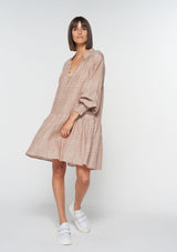 The State Dress from Zoe Kratzmann features a high neckline with delicate covered buttons, full sleeves with cuffs and a gathered drop waist which is effortless and flattering. Crafted from 100% linen, this dress blends a chic polished look with a free-spirited feel making it the ideal choice for everyday wear.
