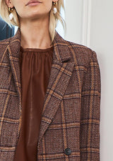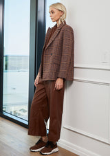 A double-breasted blazer is a hero piece of the Autumn Winter 21 Collection by Zoe Kratzmann. The easiest and quickest way to complete your look is a blazer. Black and blue hued checks add versatility to this timeless modern classic. Features classic double-breasted jacket, inside button for a neat fit and fully lined with rear back vent.