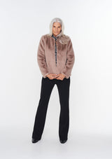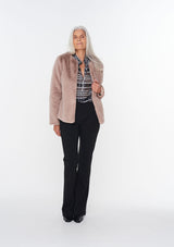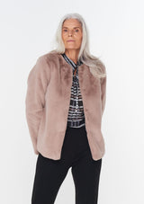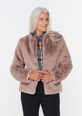 The Temper Jacket from Zoe Kratzmann is a boxy jacket with a youthful yet luxe vibe. It features a round neckline and full-length sleeve finished with 4 hook and eyes inside the jacket for closure. The mink soft faux fur adds a joyous mood to this charming and cosy piece that finishes at the ideal hip height. Fully lined in a slightly stretch fabrication.