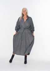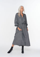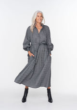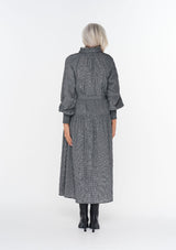 The Tether Dress from Zoe Kratzmann offers a flattering and functional solution to trans-seasonal dressing. It features a subtle ruffle neckline, hook and eye closure with delicate covered buttons, full sleeves with shirred elasticized cuffs, drop waist seam and self-tie belt. Crafted from a cotton blend and cut in a delicate mini check, this fabric also has a crinkle effect that lends a contemporary edge.