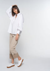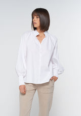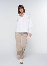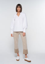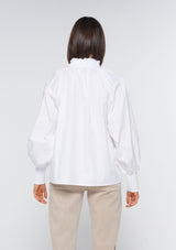 The Token Top from Zoe Kratzmann features a delicately ruffled high neckline with covered buttons and raglan style full blouson sleeves with shirred cuffs. Crafted from 100% Cotton, this top blends a chic polished look with a free-spirited feel making it the ideal choice for everyday wear.