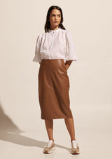 The Vortex Skirt from Zoe Kratzmann is a mid-length skirt featuring a slightly high waist and a straight silhouette. This classic pencil style skirt is a great spring wardrobe staple.