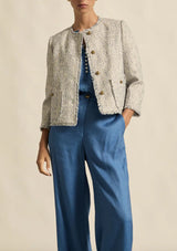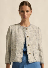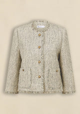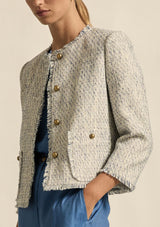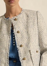 The Zeal Jacket by Zoe Kratzmann combines delicate details with soft texture, offering polish with a romantic sensibility. This cropped jacket features a fringe-trim finish and feminine round neckline. from coastal escapes to city commutes, it’s the perfect trans seasonal layer.