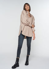 The Zeal Top from Zoe Kratzmann is clean and modern. It features a collar with a covered placket opening, a dramatic cuffed blouson sleeve and a hi/low curved hem for a flattering finish.