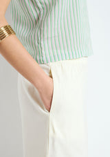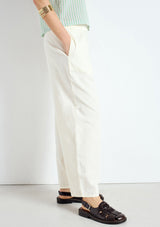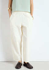 The Lybay Pants by American Vintage features a high waist with a straight leg, elasticated waist and pockets on the side. Crafted from 100% Cotton, these pants are the perfect piece for comfort and style.