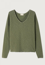 The Sonoma L/S T-Shirt by American Vintage features a V neckline, long sleeves and slightly oversized fit. It is crafted from 100% Cotton and has a soft fleck finish in the fabrication