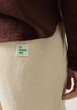 The Afaz Trousers by American Vintage combines a traditional suit with the casualness of denim. Crafted by 100% Cotton, this pant features a wide cut, semi-elasticated waist and a denim inspired Italian canvas.