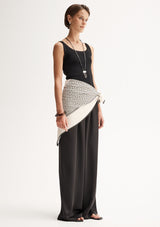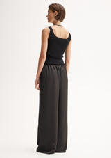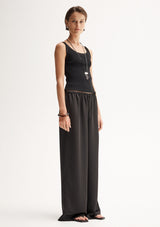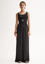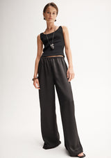 The Mina Pant by Elka Collective is crafted by 100% Japanese Recycled Polyester and features a full-length wide leg and an elasticated waist with a drawstring.