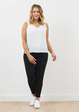 The Mela Purdie Zip Stiletto Pants feature an elasticised waist, tapered leg, front pockets and ankle zip feature. Cut for a relaxed fit with generous stretch for added comfort. This classic design has been revamped and from SS19 the zips will now colour coordinated back to the colour of the pant.