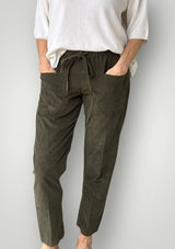 The Jessie Pant from frockk features an elasticised drawstring waist, patch pockets and a tapered leg with a relaxed silhouette. This pant is crafted from 100% linen; a non-stretch fabrication that is breathable and ideal for everyday wear.