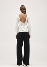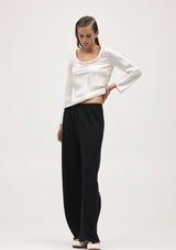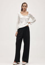 The Coco Pant are a full-length pant. They sit on a flat elasticated waistband that are cut on the bias. This version of the Coco Pant is crafted in a tencel linen cloth.