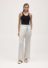 The Lili Pant by Marle is a timeless black trouser, featuring a flat waistband and side pockets. A detachable loop belt and subtle single pleats elevate the classic wide-leg silhouette, while two pockets at the back add functional detail.