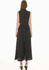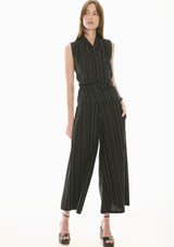 Made from a textured cotton blend with a fine stripe, the Chelsea Wide Leg Pant by POL Clothing features a flat waistband at the front and an elasticised back.