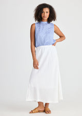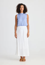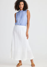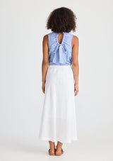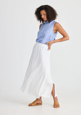 The Sicily Skirt by Shanty features an ankle length, side splits, a raw edge trim and is crafted by a breathable linen with natural slub texture.