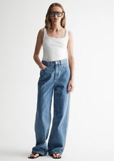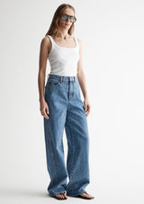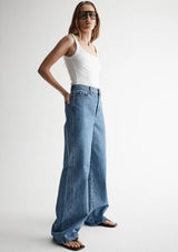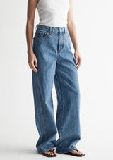 The ultimate form of casual dressing, the Odin Jean encapsulates effortless everyday style for work and play. Made from 100% cotton denim, these jeans have a relaxed, slightly oversized fit, mid-rise waist and full floor length leg with button and zip fly. The mid-blue wash pairs perfectly with crisp whites.