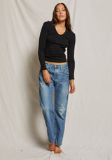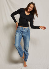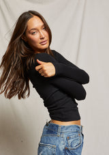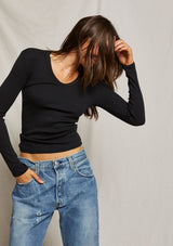 Perfect White Tee Robyn U Neck Rib Long Sleeve