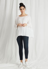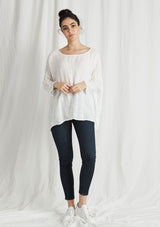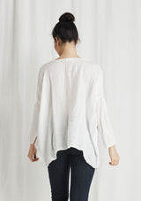 The CP Shades Sibella Top is crafted from 100% linen. This shirt features a relaxed boat neckline, long sleeves and has an oversized boxy silhouette.