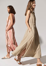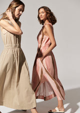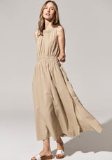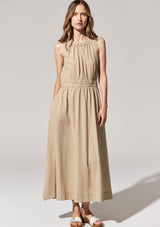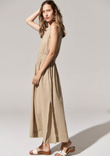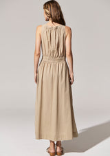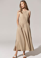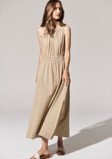 Featuring a textured tonal stripe, a gathered neckline and an elasticised waistband, the Acacia Tank Dress is an elevated pop on piece perfect for daywear.