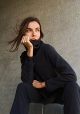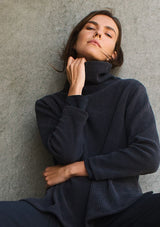 Crafted in Cord Knit, a plush large scale rib, soft to touch with an airated warmth, The Funnel Sweater features a funnel neckline and relaxed fit, a great piece for layering.