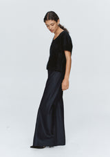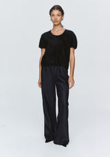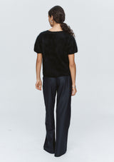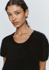 The Alba Tee by Marle is crafted from soft and lightweight brushed cashmere yarn, finished with a fluffy texture. This top has a relaxed silhouette with a round neckline and elongated t-shirt sleeves, falling at a semi-cropped length in the body