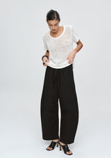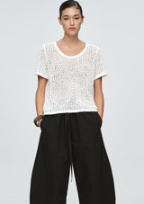 The Rumi Top by Marle is a lightweight short-sleeve top constructed in a 100% cotton - black and ivory mélange yarn. Designed with a relaxed, boxy shape and finished with a wide scoop neckline. Suitable for layering or standalone wear.