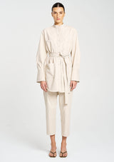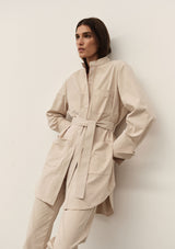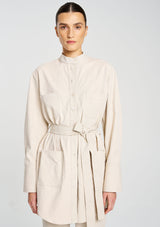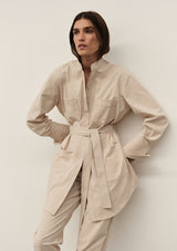 Crafted from Gravitene, a compressed Memory Stretch Mirco Twill with cotton touch. The Safari Jacket features tie up style with utility pocket details.